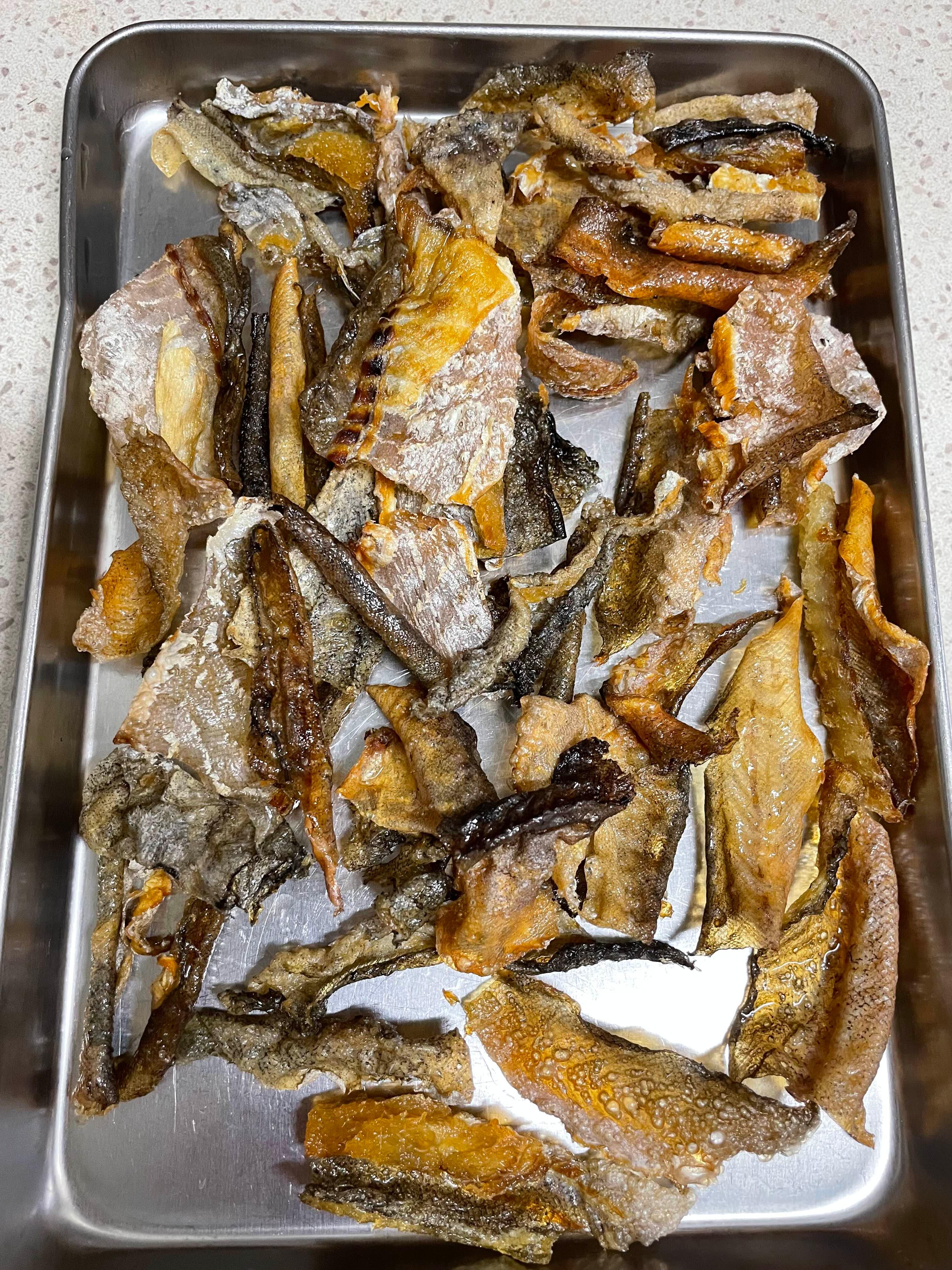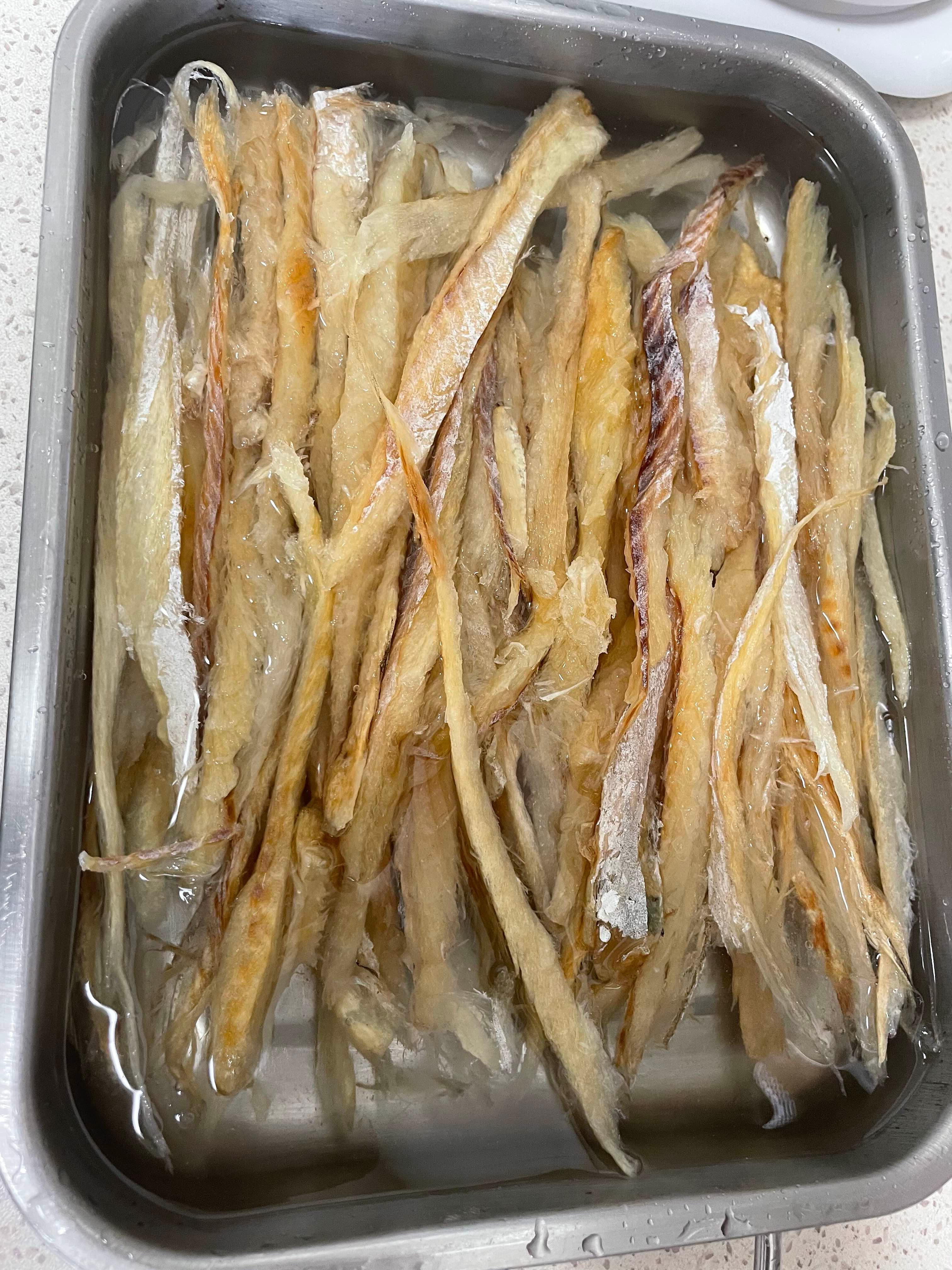 불린 황태 껍질에 기름을 발라 오븐에 구워 주었다.